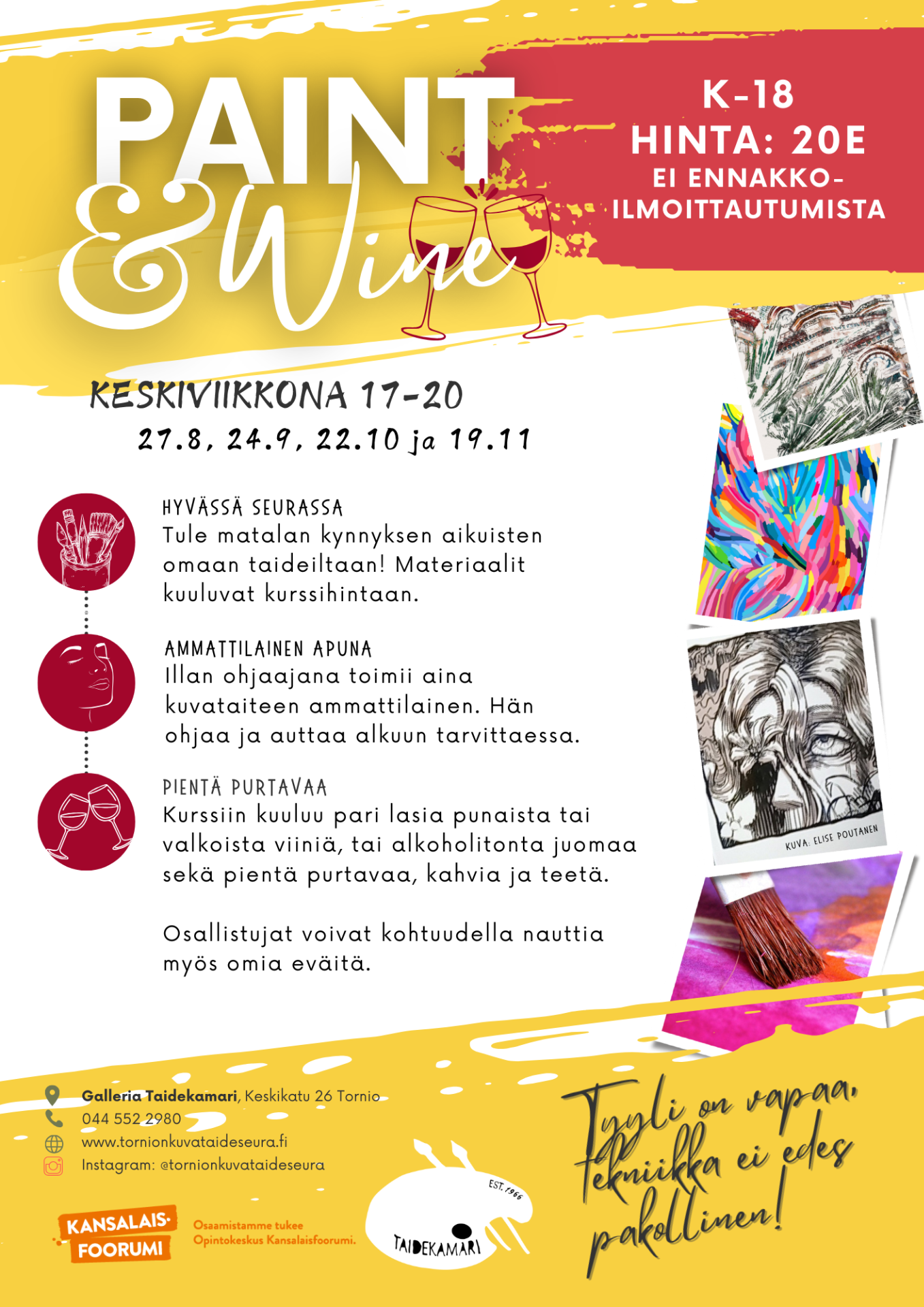 Tervetuloa mukaan rennolle taidekurssille, jossa luovuus saa virrata viinin lailla!